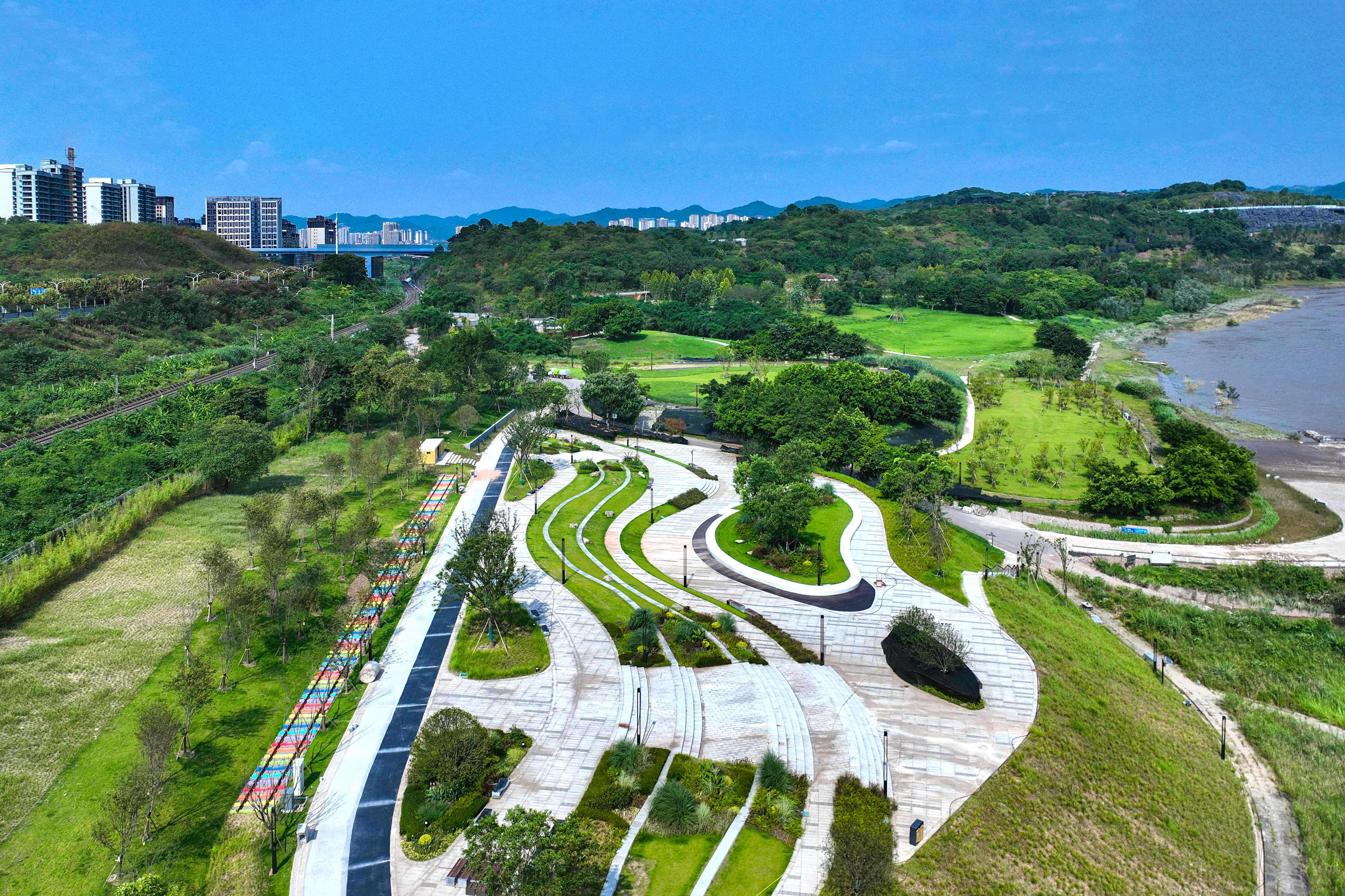 中冶建工承建的重慶“兩江四岸”治理提升長(zhǎng)江北岸線延伸工程釣魚嘴濱江段項(xiàng)目,是重慶市重點(diǎn)工程,也是“兩江四岸”治理提升重點(diǎn)項(xiàng)目,全長(zhǎng)約4.2公里,通過(guò)微改造,巧妙利用現(xiàn)有草海、森林、江灘等資源,彰顯原生態(tài)自然景觀,使生態(tài)美景連點(diǎn)成線,讓群眾享受更多開窗見(jiàn)景、推門見(jiàn)綠的城市空間,成為全國(guó)各地增植補(bǔ)綠、打造生態(tài)宜居城市的典范。